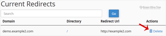 3. Scroll down to the end of the page. Under Current Redirects, locate the domain and click on remove.